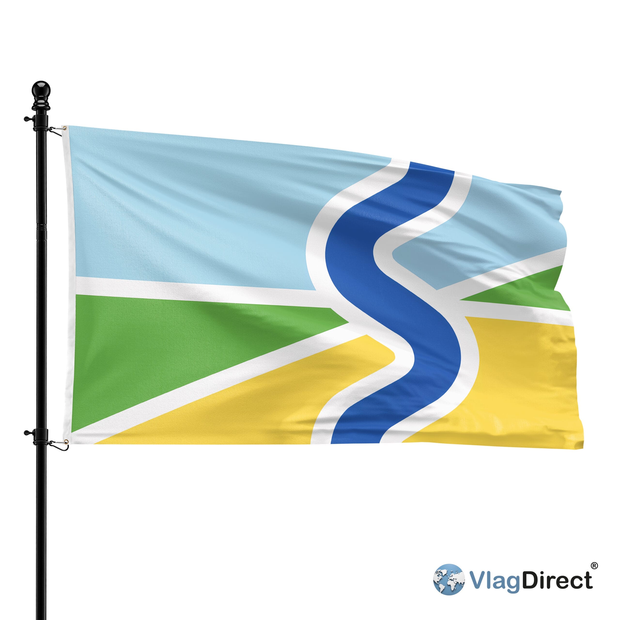 Golvende blauwe baan: symboliseert de rivieren en de letter S